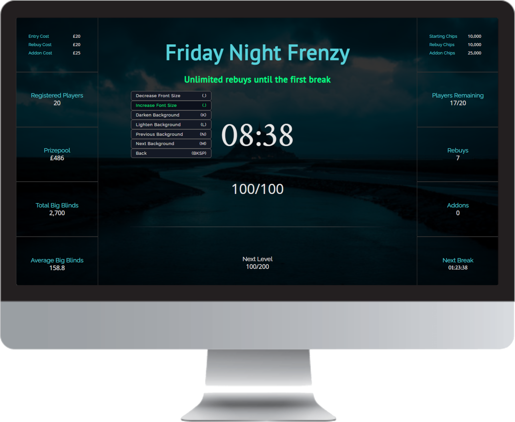 This includes changing, or removing, the background as well as making it darker or brighter. You can also increase and decrease the font size to make sure that all of your players can see what you need them to see.
